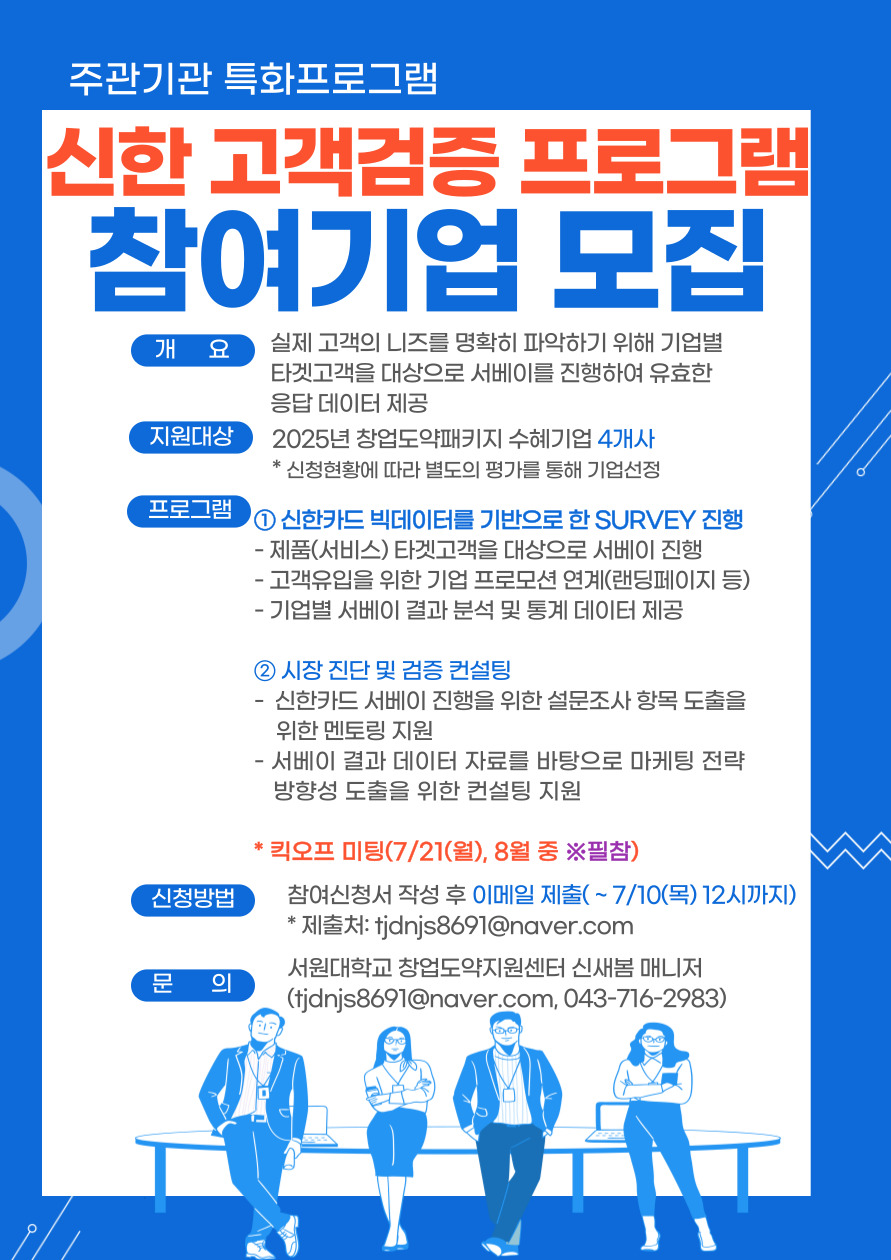 [서원대학교 창업도약센터] 2025년 창업도약패키지 "신한 고객검증 프로그램" 참여신청 안내